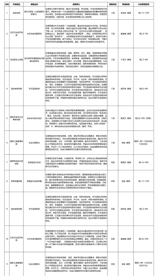 专题研讨课预计于第8教学周(10月26日)开始授课,具体选课和开课安排请关注教务处、研究生院网站和微信公众号的后续通知。
