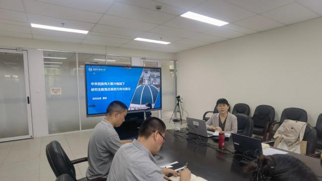 会议首先由支部副书记曹原进行导学。曹原同志带领全体党员回顾了集中大课的学习内容,对上述工作方案中涉及研究生教育的相关内容从指导思想、总体目标、重点任务、保障措施四个方面进行了细致剖析,结合教育强国背景下的时代要求,曹原同志进一步分享了我校研究生教育改革的理论逻辑和对未来的展望。