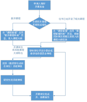 1. 开课管理。院系负责研究生课程建设、管理与质量保障工作。申请人(包括研究机构、教辅直属机构人员等)的开课管理工作由申请人归属学位点所在院系负责。