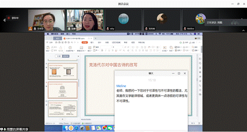 【法语专场】11月1日,法语讲座“克洛代尔与中国诗歌”散发着浓浓的文艺气息,邀请电子科技大学周蕾副教授为主讲人,由李苑菲老师主持。周副教授带领同学们分析保尔·克洛代尔所翻译的中文诗,探讨诗歌可译性与不可译性,并强调了解源语言地的文化习俗、语言习惯、历史故事对诗歌翻译的重要性,说明诗歌翻译需从结构、韵律、节奏通盘考虑。通过本次讲座,同学们体会到诗歌翻译的挑战性,也得以一窥诗歌翻译的奥妙所在,并深入地领略诗歌乃至语言文字的魅力。