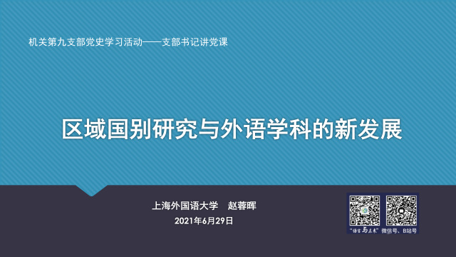 区域国别研究与外语学科的新发展 ——“奋斗百年路,启航新征程”机关第九党支部“七一”系列党课