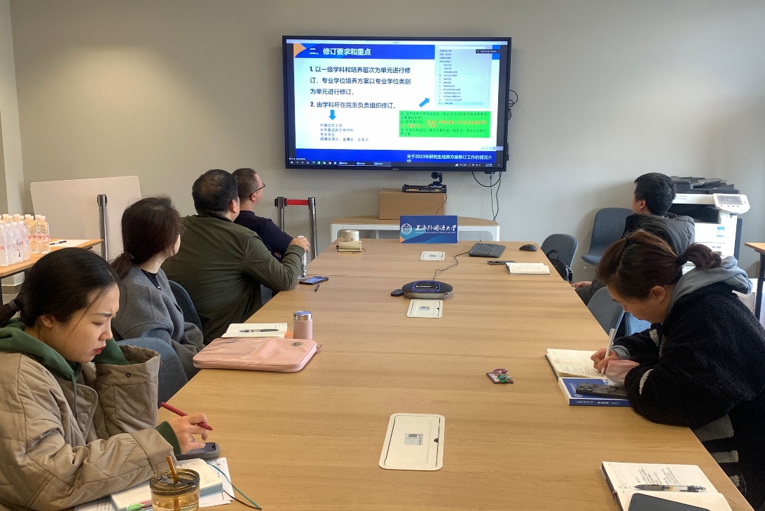 研究生院培养与国际化办公室的黄婷老师介绍了培养方案修订工作的基本情况,包括修订原因依据、修订范围、修订的要求和重点等,并针对工作流程和时间节点安排进行了分步说明。在随后的互动交流环节中,各培养单位根据自身学科专业特点,就修订的具体要求及相关操作细节进行了深入探讨。