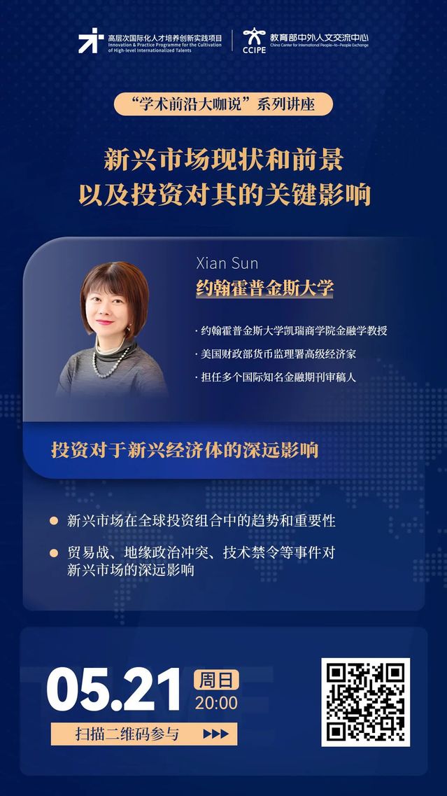 学术前沿大咖说 | 新兴市场现状和前景以及投资对其的关键影响(5月21日20:00,主讲人:Xian Sun)