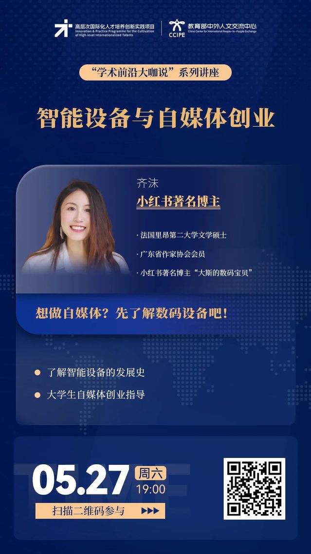 学术前沿大咖说 |  智能设备与自媒体创业(5月27日19:00,主讲人:齐沫)