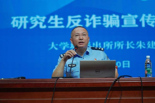 上海市松江区大学城派出所所长朱建警官幽默生动的案例教学使得现场欢笑阵阵,反诈骗意识也更加深入人心。
