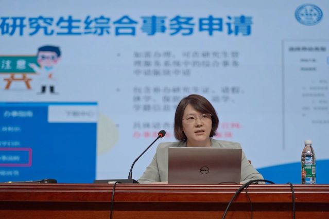 研究生院培养与国际化办公室副主任黄婷老师、学位与学籍办公室主任王孙轶老师的分享同样干货满满,两位老师就研究生入校至毕业过程中的重要节点进行了介绍,并教导同学们利用多种信息平台获取信息和资源,认真对待课程及论文,学会自己规划个人求学、求职的途径。
