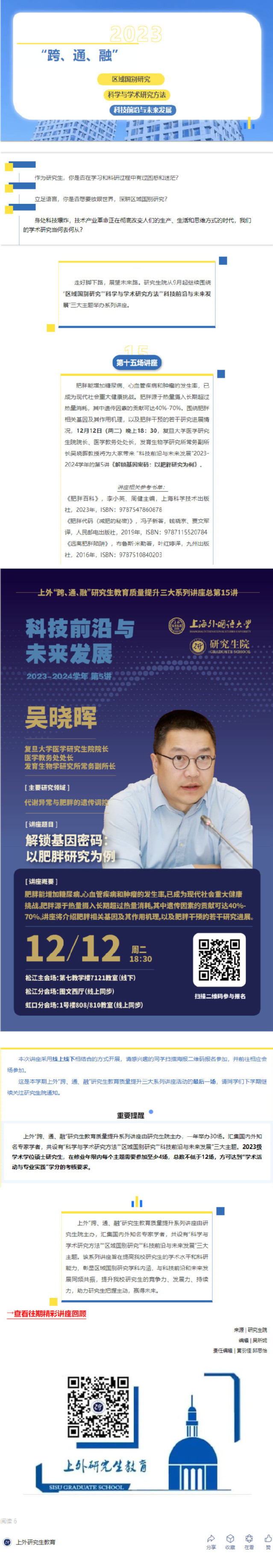 上外“跨、通、融”研究生教育质量提升三大系列讲座第十五场讲座开启报名
