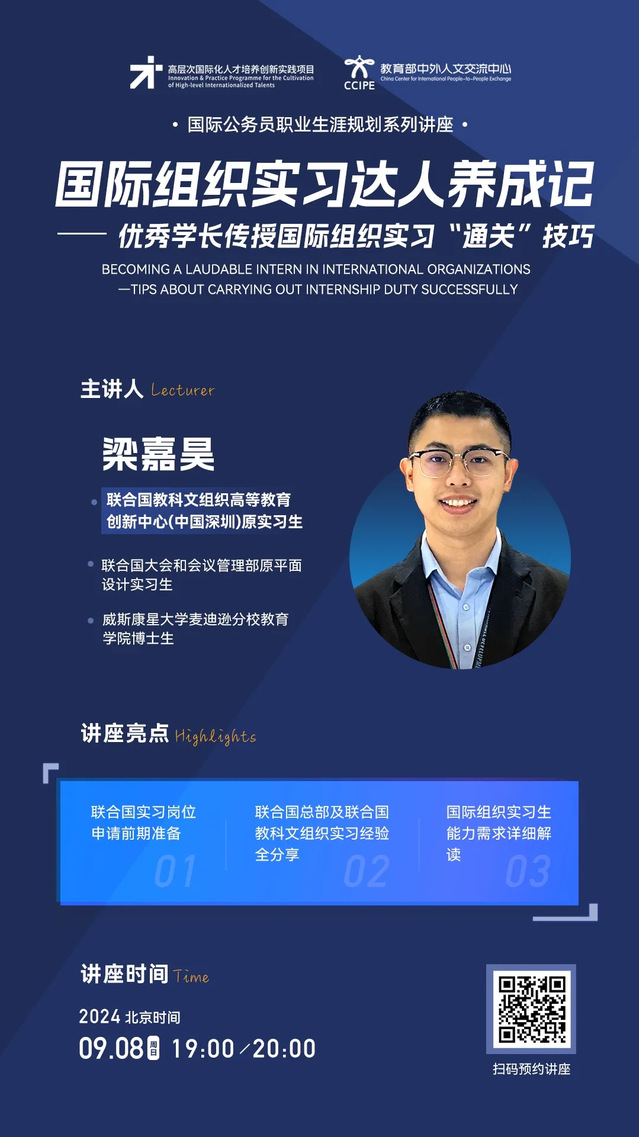 | 国际组织实习达人养成记——优秀学长传授国际组织实习“通关”技巧(2024年9月8日19:00-20:00,主讲人:梁嘉昊) - 上海外国语大学