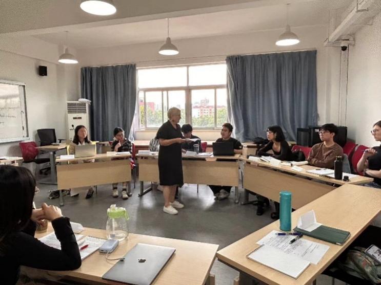 在下午的活动中,她向同学们展示了不同翻译软件对同一则文本的翻译,分析机翻的特点,指出了机器翻译存在的问题,并强调人们不能过度依赖于机器翻译,要发挥人的主体性,让机器翻译成为人的有力工具。