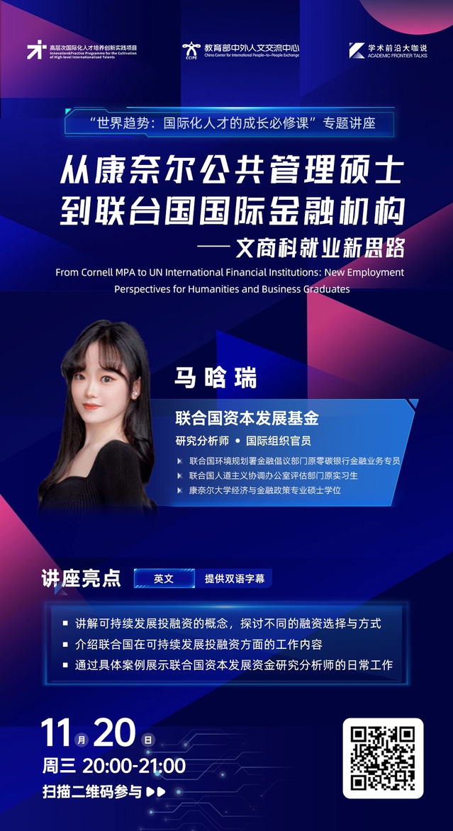 为全面贯彻落实党的二十大精神,助力提高人才培养质量,加快培养具有深厚家国情怀、良好人文素养、扎实专业基础、宽广国际视野、创新精神和全球胜任力的高素质人才,每年举办学术前沿大咖说讲座,该讲座由教育部中外人文交流中心主办。