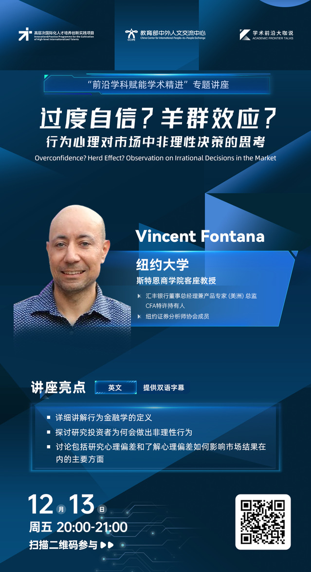 学术前沿大咖说 | 过度自信?羊群效应?行为心理对市场中非理性决策的思考(2024年12月13日 20:00-21:00,主讲人:Vincent Fontana)