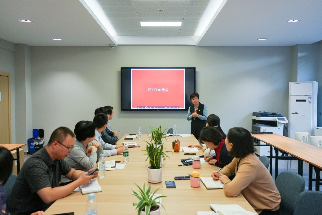 支部书记赵蓉晖带领研究生院全体成员认真学习了习近平总书记在201852日《在北京大学师生座谈会上的讲话》《习近平关于“不忘初心、牢记使命”论述摘编》中有关教育的论述等,紧紧围绕“立德树人”作为教育的根本任务,以“立德树人”为目标,结合本职工作回顾研究生教育工作的方向、使命与担当。赵蓉晖强调,研究生院作为学校教育教学管理部门之一,学习习近平总书记讲话是为了找准发展方向、明确自身定位,每一位成员都需要深刻理解教育的核心目标和使命,通过原原本本学和认认真真悟透彻认识到高水平教育教学的内涵和所需条件,紧紧围绕“立德树人”的根本任务,坚持办学的正确政治方向,坚持建设高素质教师队伍,致力于完善、高水平的人才培养体系。