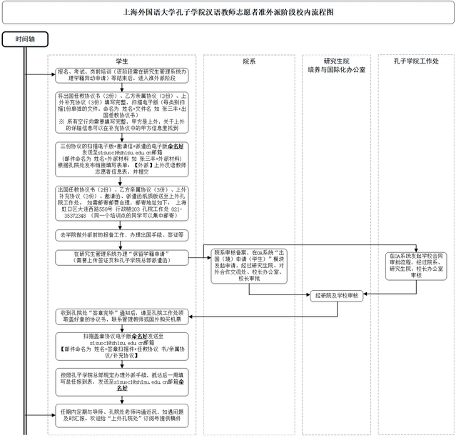 【培养—国际化】上海外国语大学孔子学院汉语教师志愿者准外派阶段校内流程图